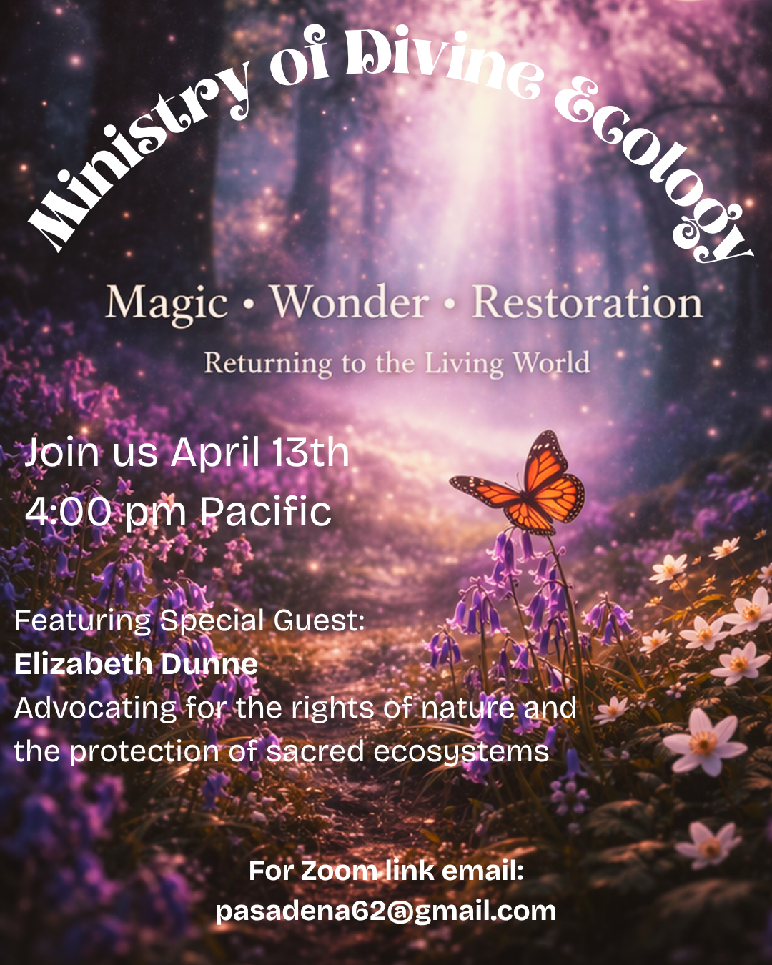 The Ministry of Divine Ecology hosts monthly gatherings that bring together reflection, learning, and conversation.